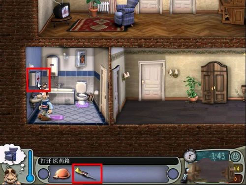 2、在卫生间找到药箱,提取强力胶水,整蛊利器之一。