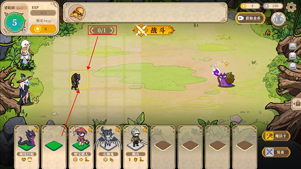 4、选购好棋子后,玩家可以拖动棋子上阵,上阵棋子数量和等级有关,等级越高上阵数量越多。