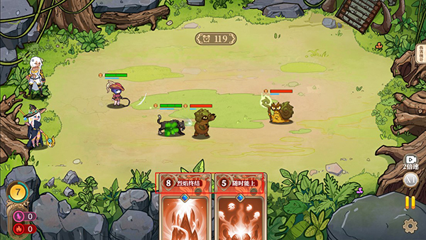 5、进入战斗后,双方会自动战斗,玩家可以点击下方卡牌释放技能,快速击败敌人。