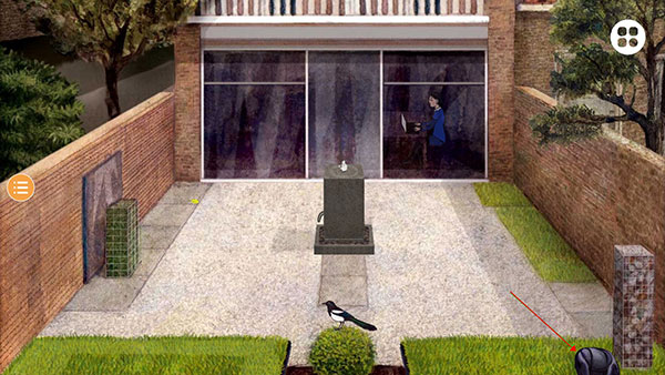在喜鹊站到石头上后,点击Milo,吓跑喜鹊,女人出来查看,再次点击Milo,过关。