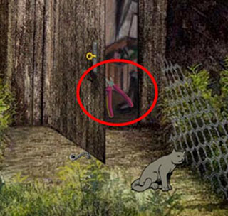 点击钥匙开门,用门内的钳子剪断铁丝网,过关。