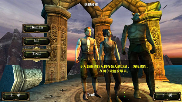 三类角色可选,人类多样、精灵稀有、巨人强悍。