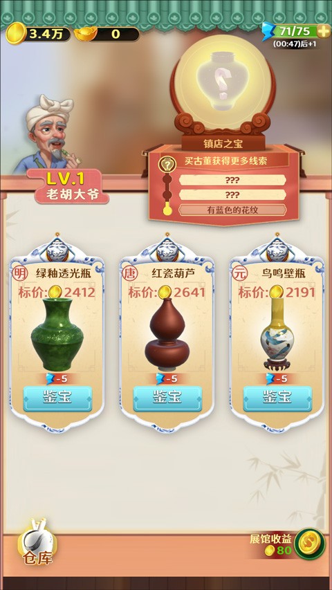 古董就是玩儿1.0版本穿越市井尘嚣,化身古董店掌柜,开启一段真假难辨的鉴宝人生。凭借独到眼光识别文物真伪,精心谈判赢得交易,不断积累财富,扩展门店规模。面对源源不断的顾客与各式古物,每一次鉴定都挑战着你的判断力与专业素养。古董就是玩儿手游1.0版本下载安装后,游戏风格轻松,玩法写实,既有趣味性,又充满古玩行当的沉浸感。