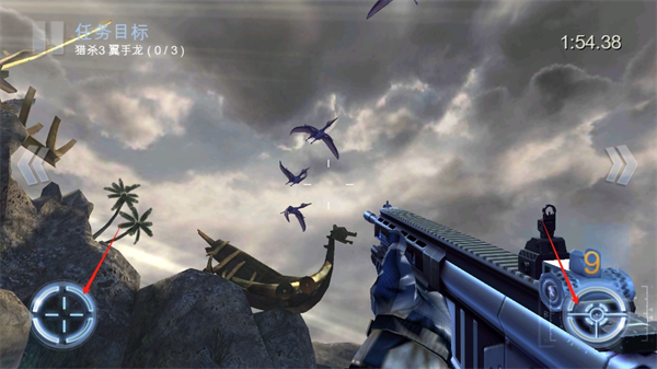 2、多样枪械自由搭配,和庞大恐龙展开刺激的战斗。