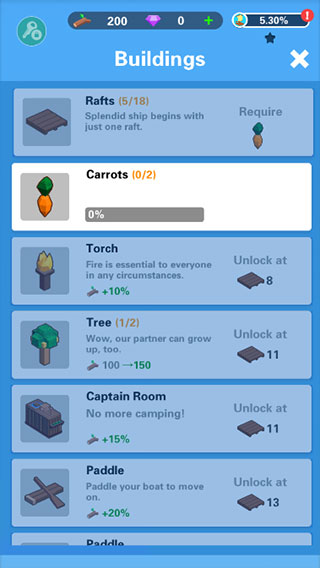 4、合理使用道具能加快建造速度,打造自己的海上家园。