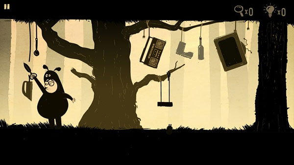 6、将树枝左边的绳子拿下来,把它绑在右边的破败的秋千上,就可以将秋千修好。进入下一个场景。