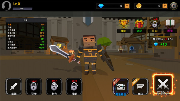 进入主界面后点击“历险记”按钮即可开启战斗征程。