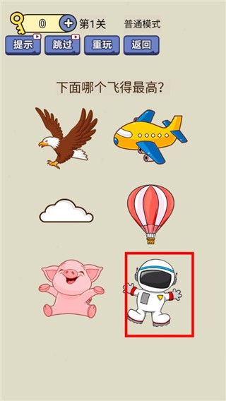 2、在这里有着提问说哪个飞的最高,可以去选择下方宇航员。