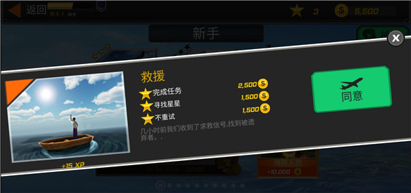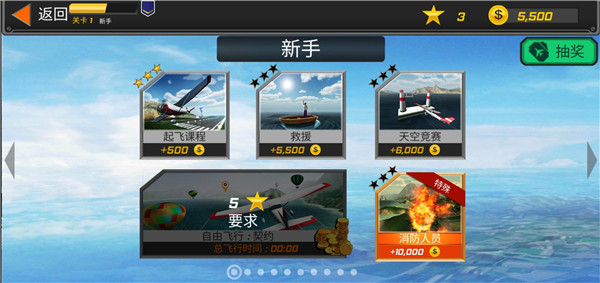 2、挑选起飞教学、空中竞速、消防等任务开始挑战。
