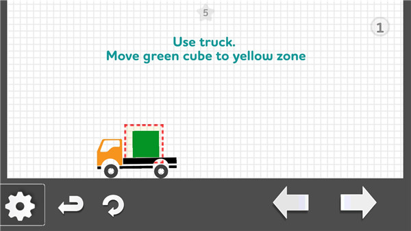 驱动车辆,载方块向左行驶,使绿色矩形精确进入黄色虚框即可通关。