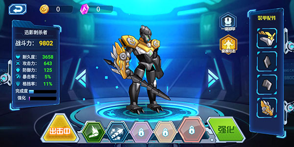 角色成长分四阶段,最终可全面增强所有机甲性能。