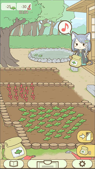 5、室外就是药圃了,这里生长着各类药草,就像农场一样会定时生长,需要手动采集,也可使用道具让右上角的小猫帮忙打理。
