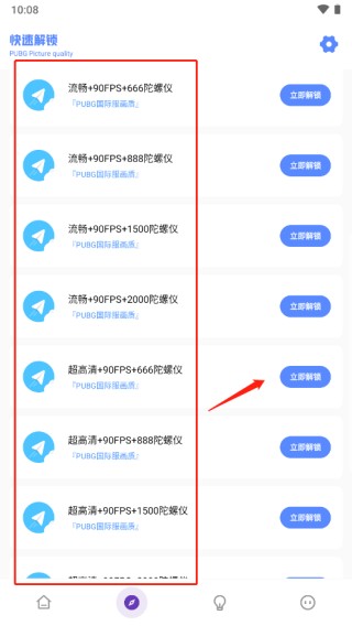 1、打开亚洲龙画质工具,首页可自定义画面清晰度、帧率参数、音频表现及画幅比,完成设置后点击【解锁画质】即可生效。