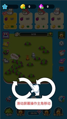 1、通过滑动屏幕控制人物自由移动,采集材料与交互任务。