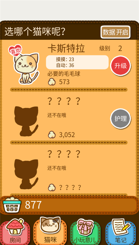 3、毛球可提升猫等级,达标后可解锁新猫种。