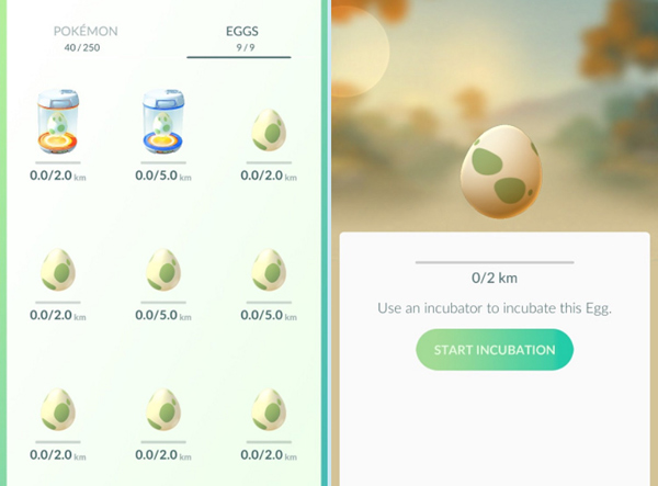 7、获取神奇宝贝的方法除了收服、进化以外,还有孵蛋这个方法。当在宝可梦驿站获得宝可梦蛋后,可以点选在自家图鉴左划查看,蛋有分成2km 、5km 、10km 三种,距离越远的蛋孵出来的神奇宝贝越稀有。一定要使用孵蛋器才能孵化神奇宝贝。每种孵蛋器一次只能敷一颗蛋,除了初始无限孵蛋器,也可以到商店购买高级孵蛋器。
