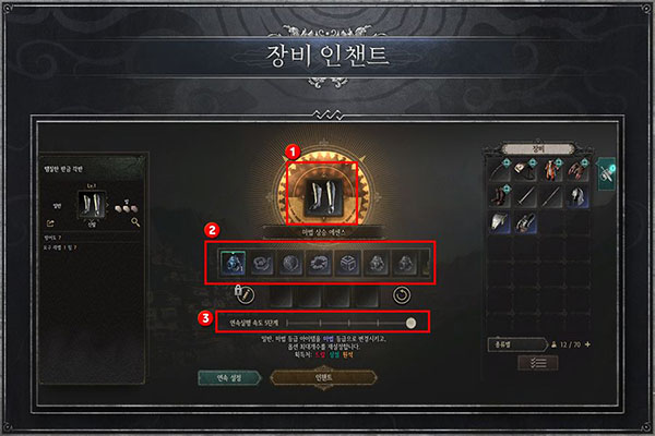 装备等级通过附魔物品、选项数量、选项类型、选项值,可以改变品质,已附魔的可用选项为每个物品设置不同。