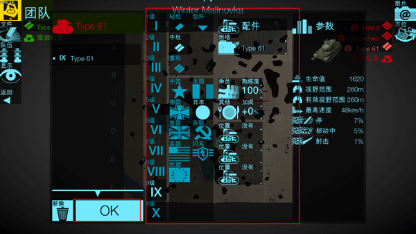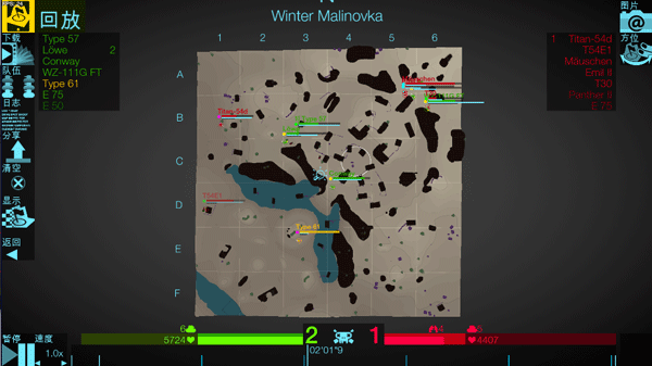 自定义双方阵容配置,选择战车型号、炮塔参数及成员状态等。