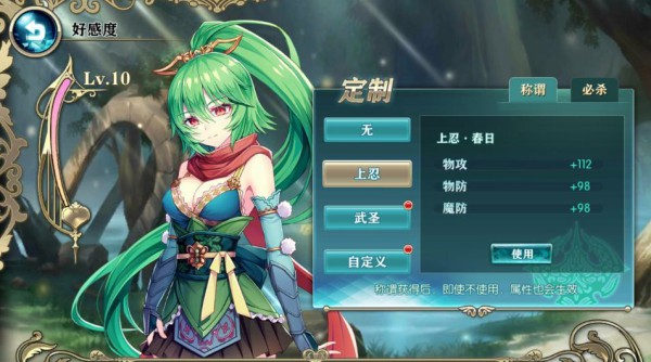 3星角色可在好感达3级时开启神器,属性能力随亲密提升逐步增强。
