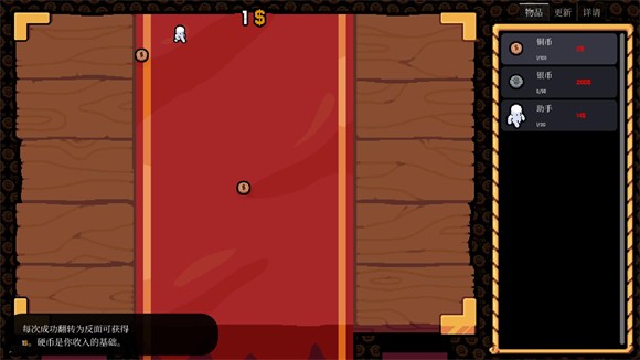 1、点击硬币正面朝上时获得金币,重复操作持续积累收入。