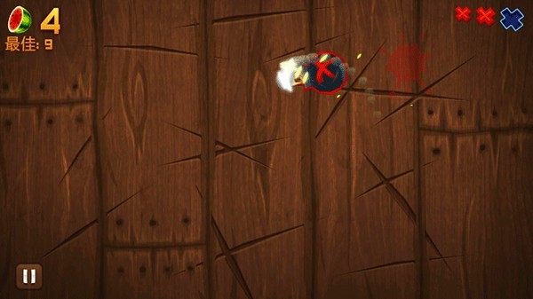 玩家滑动屏幕即可完成切割动作,注意躲避炸弹。