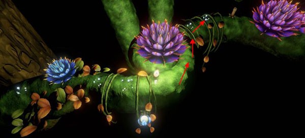 1、第四章第一节,点击屏幕右边燃烧蜡烛的同时点亮小蘑菇,跟随小蘑菇发光的线路,这里躲着个小蜡烛哦。