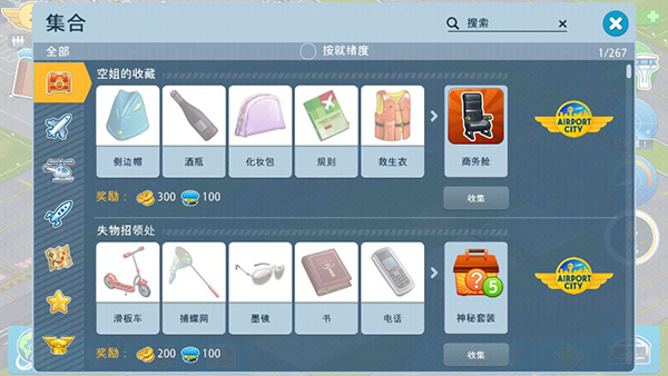 通过宝箱图标进入收藏页,收集完成可领特殊道具。