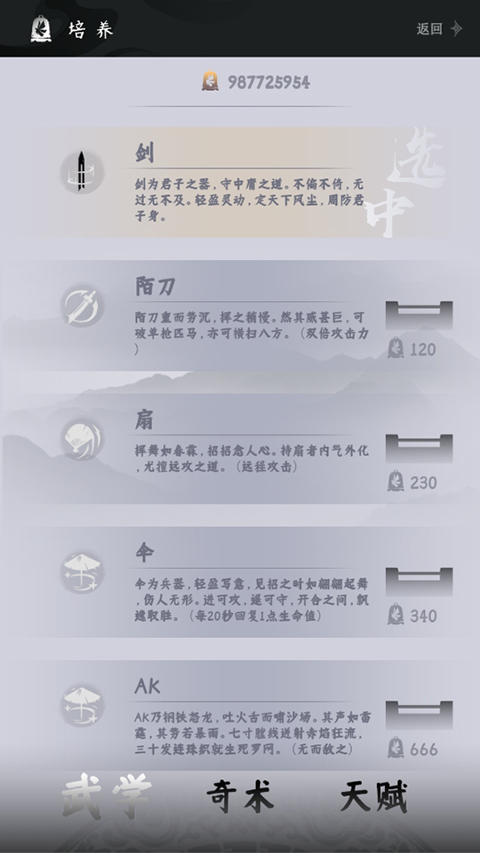 不同角色可搭配武学心法,战斗跑酷双兼具。