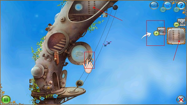 5、回去上楼,找到6个拼图。点击罗盘和机器。找到1个旋钮。