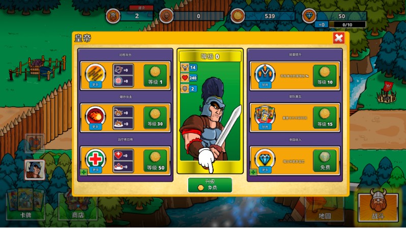 1、自由卡组搭配:躲过50种卡牌自由组合,像火焰塔、陷阱、弓箭手等功能各异,玩法丰富。