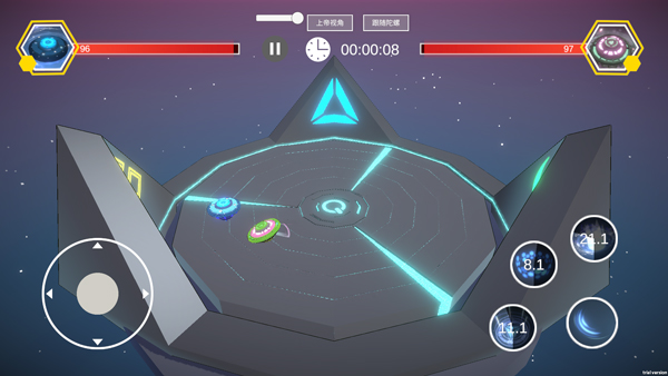 5、玩家可通过左侧轮盘来控制陀螺移动,右侧则为技能键。