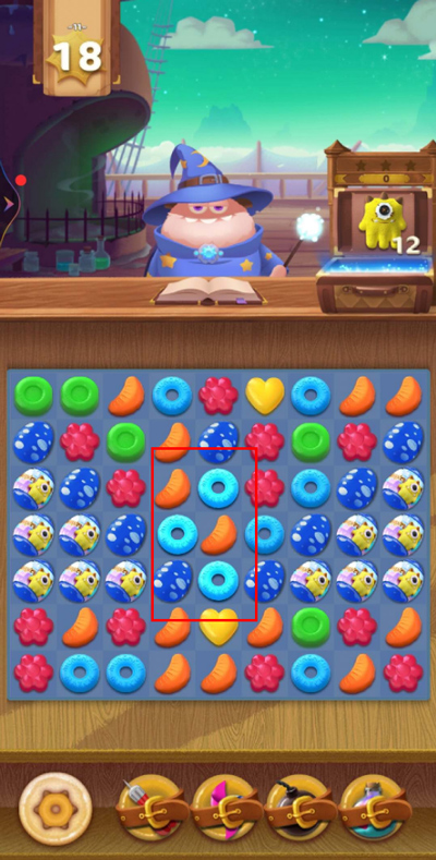 5、除了以上的这些设计之外,游戏中还加入了角色技能以及道具这些元素,主角的技能需要通过一系列消除进行充能,当能量水晶满了之后会将现场的两个元素变成同样颜色的精灵,这些精灵在消除之后会为我们带来更多的收益,因此前期的积累以及后期技能的合理使用就显得非常重要了。至于道具方面,则于通常看到的差不多,在这里也就不过多解释了。