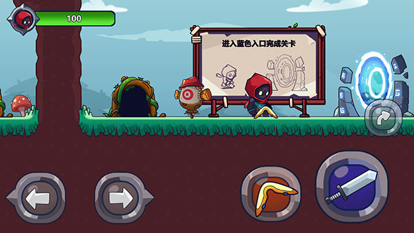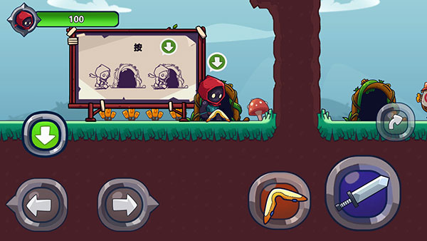 3、右下角的剑按钮是攻击键,是近战攻击的绝佳武器,可以用稻草人试试威力。