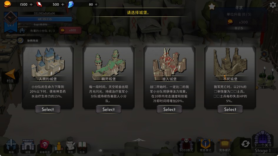 1、游戏开始时可挑选一座心仪的城堡进行建国,每座城堡皆具备不同属性,适合搭配不同的战略风格。