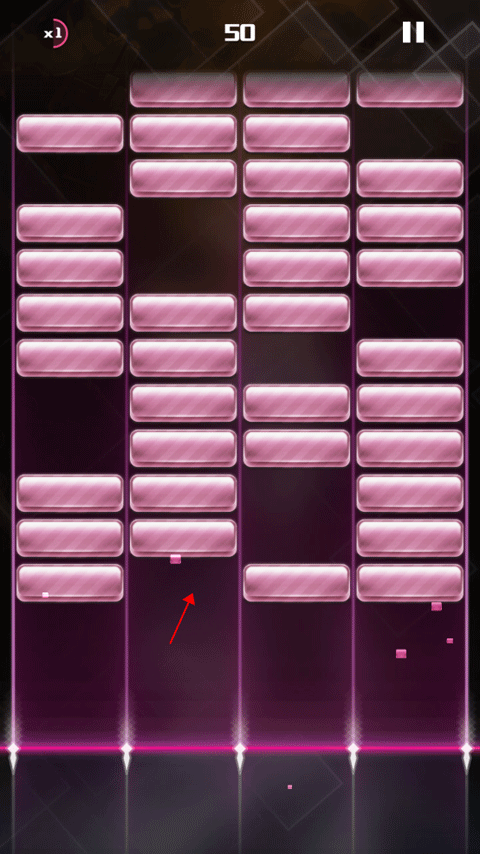3、游戏的玩法就是点击屏幕,将一行中出现空缺的地方补充砖块,当砖块补充完整之后就会自动消除,当你消除一行砖块就会获得分数。