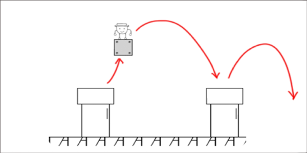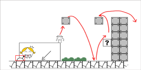 1、已进入关卡小伙伴们一定要点击跳跃,不然就会和石头一起掉下去。当跳到砖块上时迅速向柱子跳去,不然砖块一会就回消失。从柱子上走下来小心红色区域那也是陷阱,在第三个金币哪里将机关跳出来从机关上走。