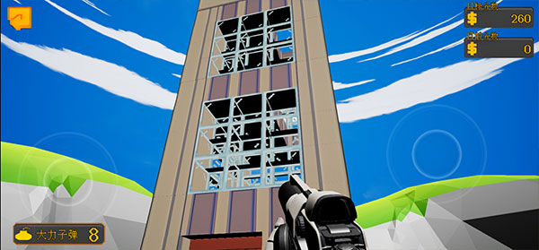 将准星对准高楼结构上的标识区域射击,即可有效引发崩塌。