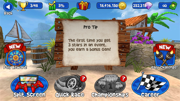 玩家可用奖励解锁各类风格赛车,从越野到太空车应有尽有。