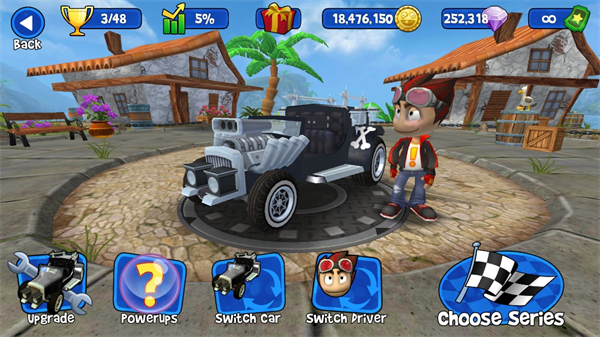 3、可自由切换赛车并进行性能升级,随后点击choose series开始赛事。