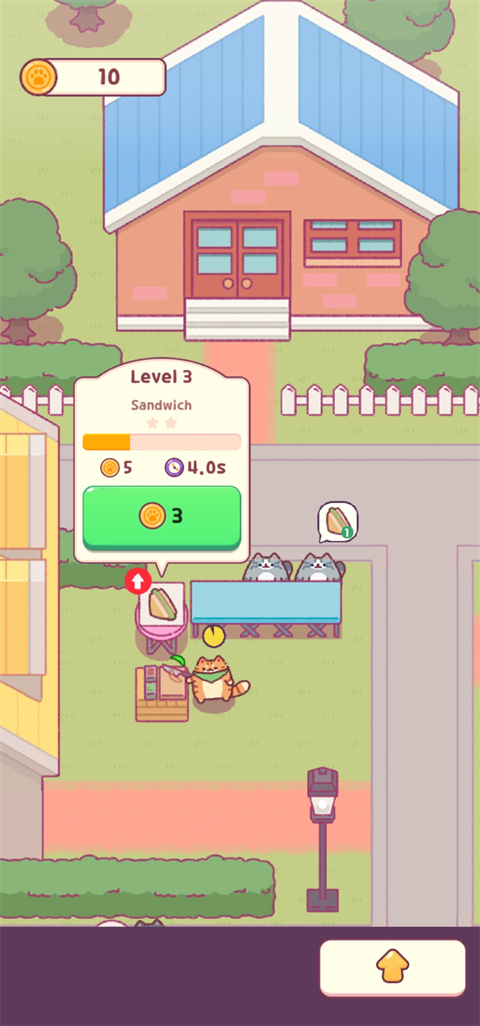 点击界面箭头召唤猫咪,协助你高效完成餐点。