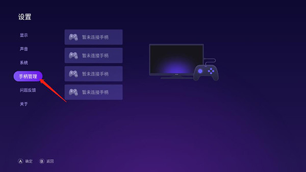 进入设置中心连接手柄设备,确保TV端可正常操作游戏内容。