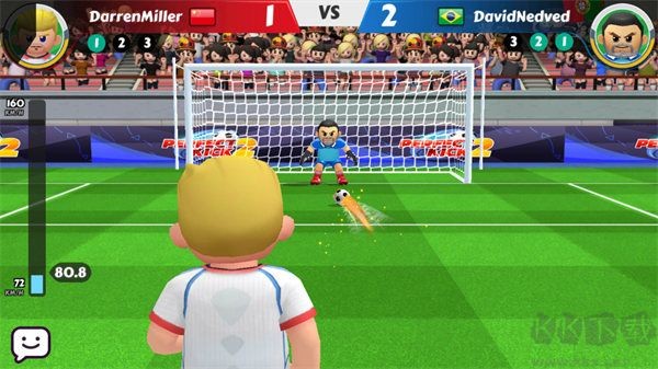 点球达人2中文版(Perfect Kick 2)是充满竞技感的足球策略手游。游戏采用炫酷的UI设计和卡通风格,主要玩法是1V1点球对决,规则简单易懂,5局3胜,轮流攻防,最先进球的一方获胜。同时,点球达人2中文版有等级和道具系统,提升球员能力,还能自定义球员外观,打造专属风格。通过培养球员,提升爆发力、敏捷性和耐力,配合高超技巧轻松击败对手。不同的踢法交替使用,比如弧线球和大力抽射,能更有效地赢得比赛。