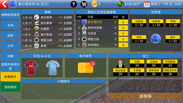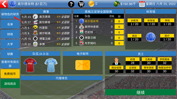 2、策略经营管理:管理球队预算、转会市场、员工雇佣,每个决策都决定球队的走向。