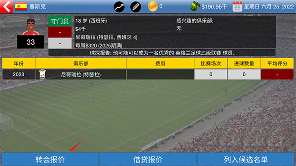 1、进入游戏后,我们选择上方被物色的球员。