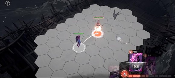 战斗期间角色会自动攻击,右下角显示能量与技能卡牌。