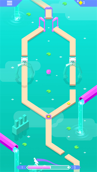 3、在湖面平台间穿梭跳跃,融入光影折射机制。