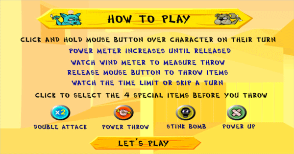 猫狗大战单机版(Cat Vs Dog War)以轻松搞怪的对战玩法为核心,玩家将操控猫或狗互相投掷物品,用智慧与技巧击败对手。对战中蓄力条决定投掷距离,同时需结合风向和风力做出判断,增加策略性。猫狗大战游戏单机版下载后,游戏还提供补血、扔臭弹、提升攻击力、增加攻击次数等特殊技能,每项技能仅能使用一次,考验玩家的时机把握与战术安排。