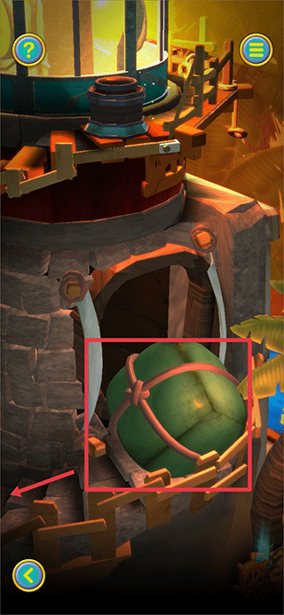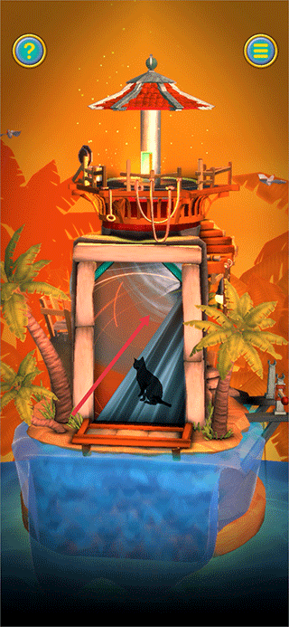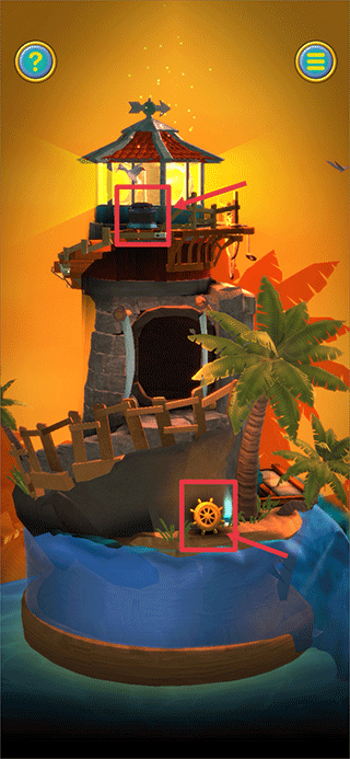 1、完成教程后,将巨石往左下拖动,让其沿楼梯滚下并撞毁木船。