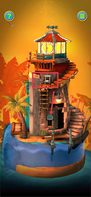 4、拉动装置解开灯塔顶端机关,拾取光碟作为关键物品。