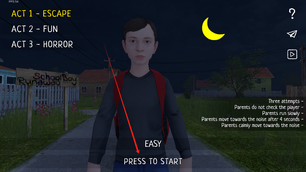逃离家暴正式版以3D第一人称视角,展现了学生试图摆脱家庭暴力的紧张逃生过程。在逃离家暴正式版下载安装后,玩家会在被软禁的房间内搜寻逃跑线索,掌握父母行动规律,制定离家计划。全游戏分为三个章节,逃脱方式分为两种,玩家需在限定时间内完成任务,体验高强度的逃脱挑战。